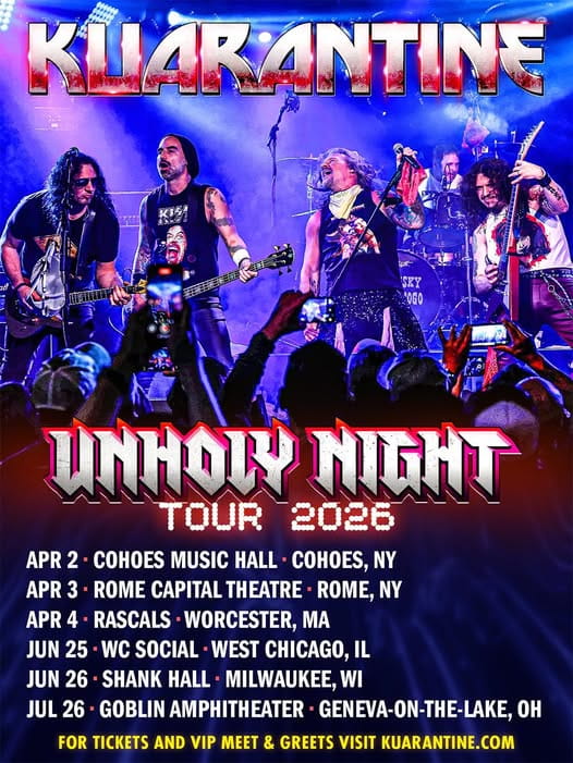 Kuarantine is the world’s BEST non make-up, 80’s KISS Kover band! They first debuted in May 2020 with the release of No No No, which reached #25 on the Billboard Mainstream Rock Charts. They now have three more TOP 20 hits in Silver Spoon (#20), Good Girl Gone Bad (#11), and Turn On The Night (#17)! The band tours regularly, bringing their high-octane rock n roll party to thousands of fans across North America, including opening for KISS themselves at the Kiss Kruise- Landlocked In Vegas extravaganza in November of 2025!